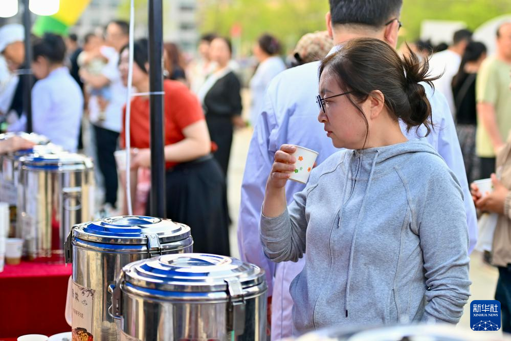 5月29日,在岫巖縣中醫藥文化夜市現場,市民品嘗中藥茶飲。
