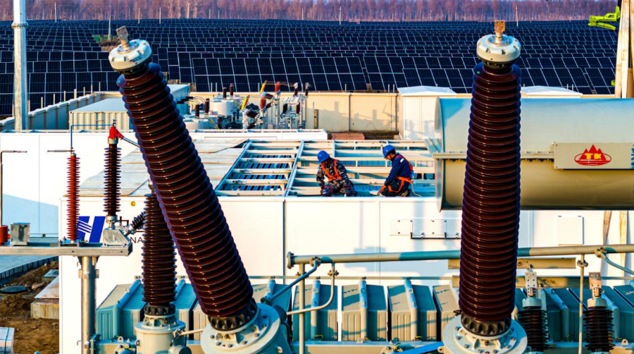 2024年12月27日,由國網阜新供電公司承建的華能彰武50萬千瓦光伏治沙示范項目220千伏送出工程成功投運,光伏發電項目提前并網。這一項目是遼寧省首個光伏治沙示范項目,采用“光伏+治沙”模式,推進荒漠化治理,推動生態修復與新能源產業融合發展?!肮夥椖磕芴崆安⒕W,得益于國網阜新供電公司的全力支持,他們冒著嚴寒保工期,加班加點趕進度,為光伏項目加快并網提供了先決條件?!比A能彰武50萬千瓦光伏治沙示范項目的項目經理馬巖感慨地說。該項目投產后,預計年發電量約8億千瓦時,相當于每年節約標準煤24萬噸,減少二氧化碳排放約65萬噸。