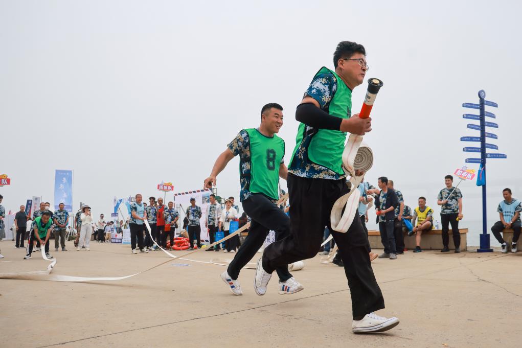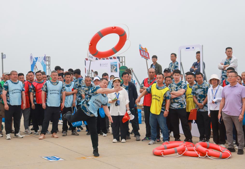隨后,來自大連海洋大學船員培訓學院的40名參賽漁民代表們圍繞拋投救生圈、結繩、消防水帶鋪設、急救包扎等貼近漁業生產實際的實戰項目,展開了激烈角逐。比賽項目不僅考驗著選手們的體能素質和技巧水平,更展現了應急處置能力和團隊協作精神。
