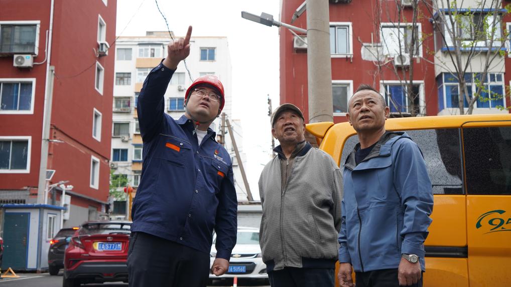 國網沈陽市皇姑區供電分公司工作人員在老舊小區向居民講解日常用電注意事項,提升群眾安全用電意識。(受訪單位供圖)