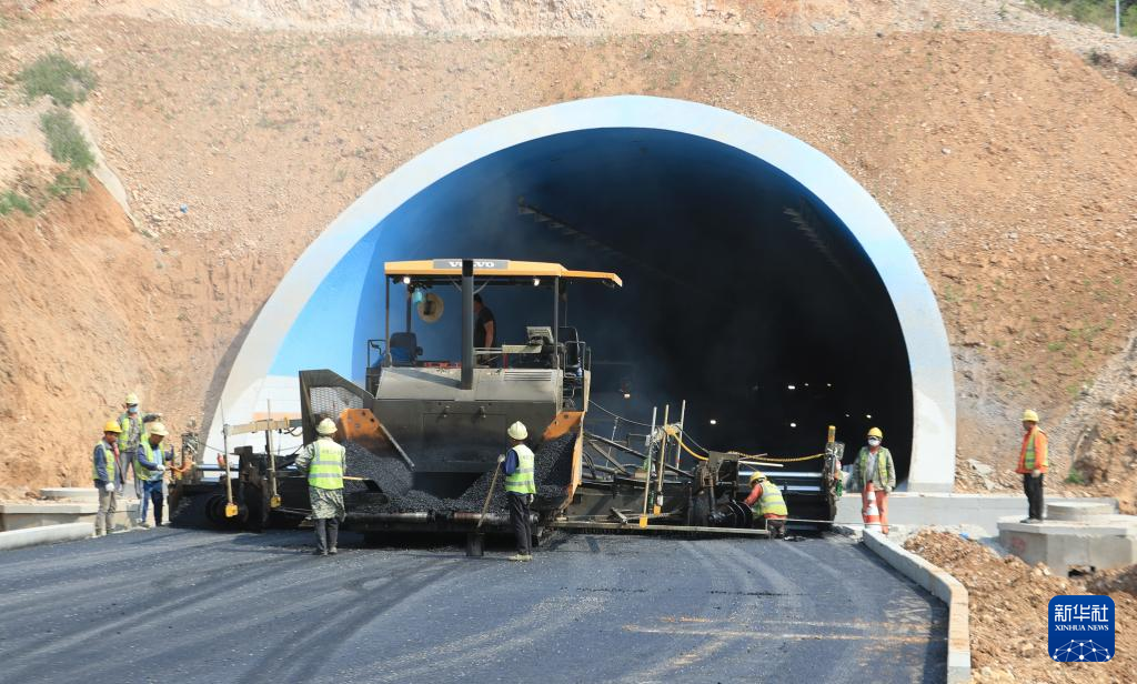 6月12日,在凌綏高速公路4a標段,中鐵二十局建設者進行瀝青攤鋪作業。