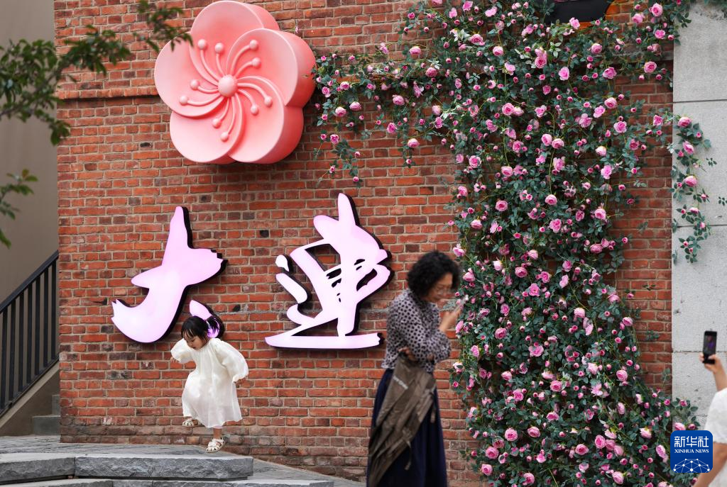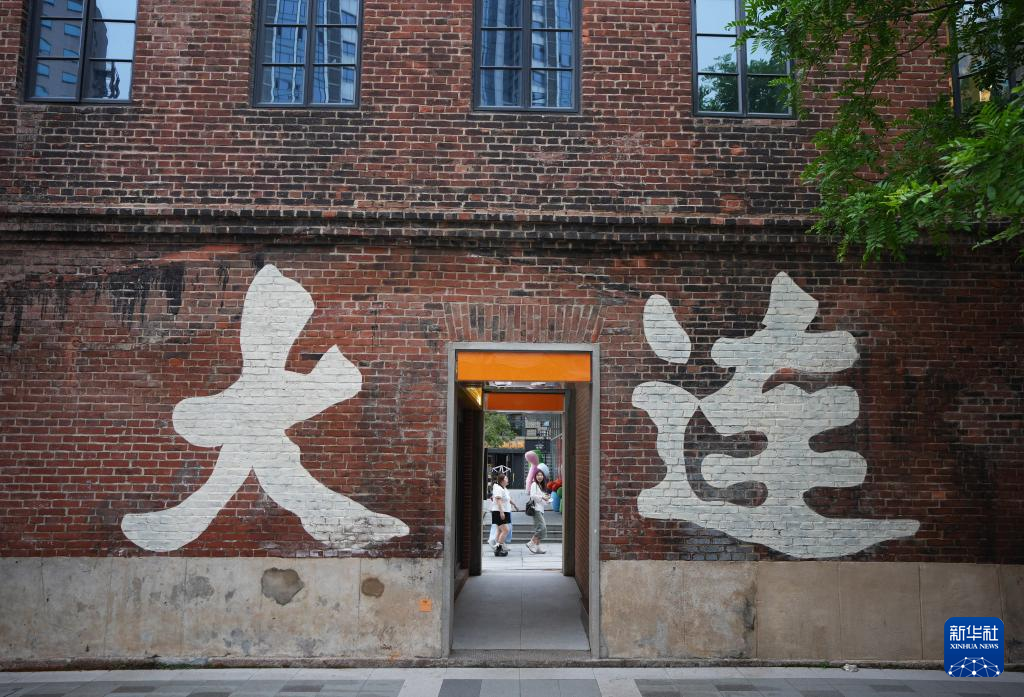 游客在大連東關街歷史文化街區打卡拍照(6月13日攝)。