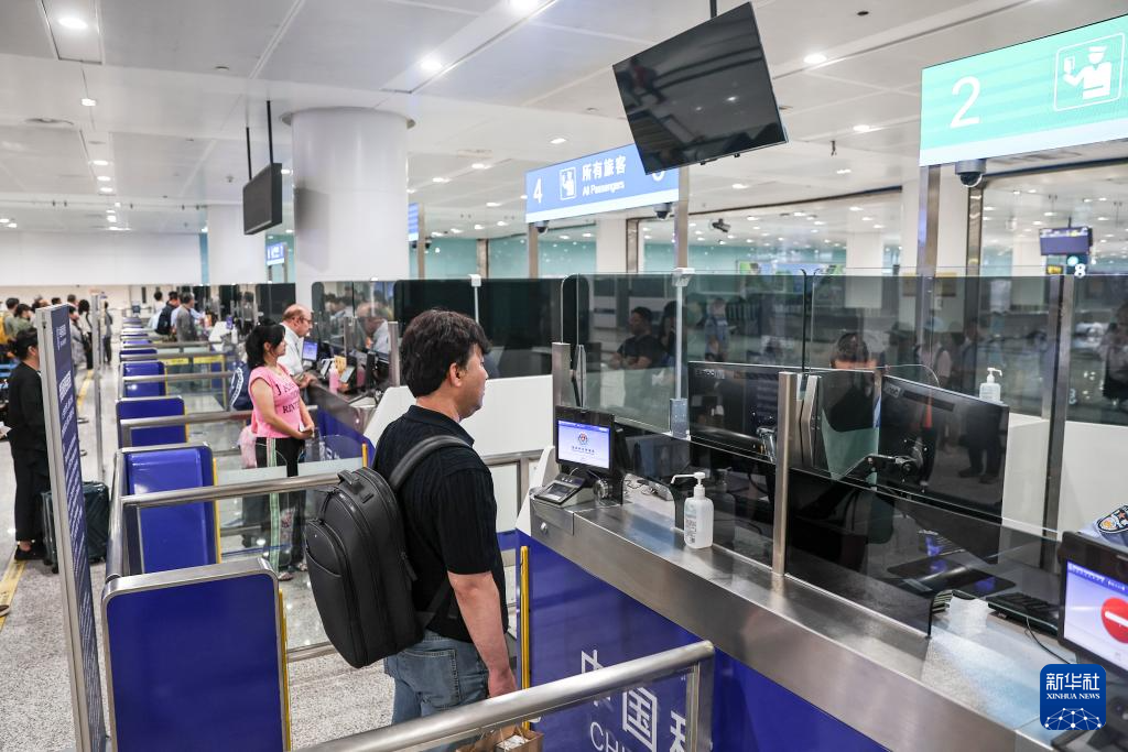 7月9日,旅客在大連周水子國際機場辦理入境手續。