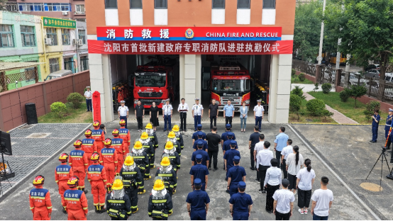 7月17日,沈陽市新建政府專職消防隊進駐執勤儀式在和平區舉行,首批11個政府專職消防隊揭牌成立。