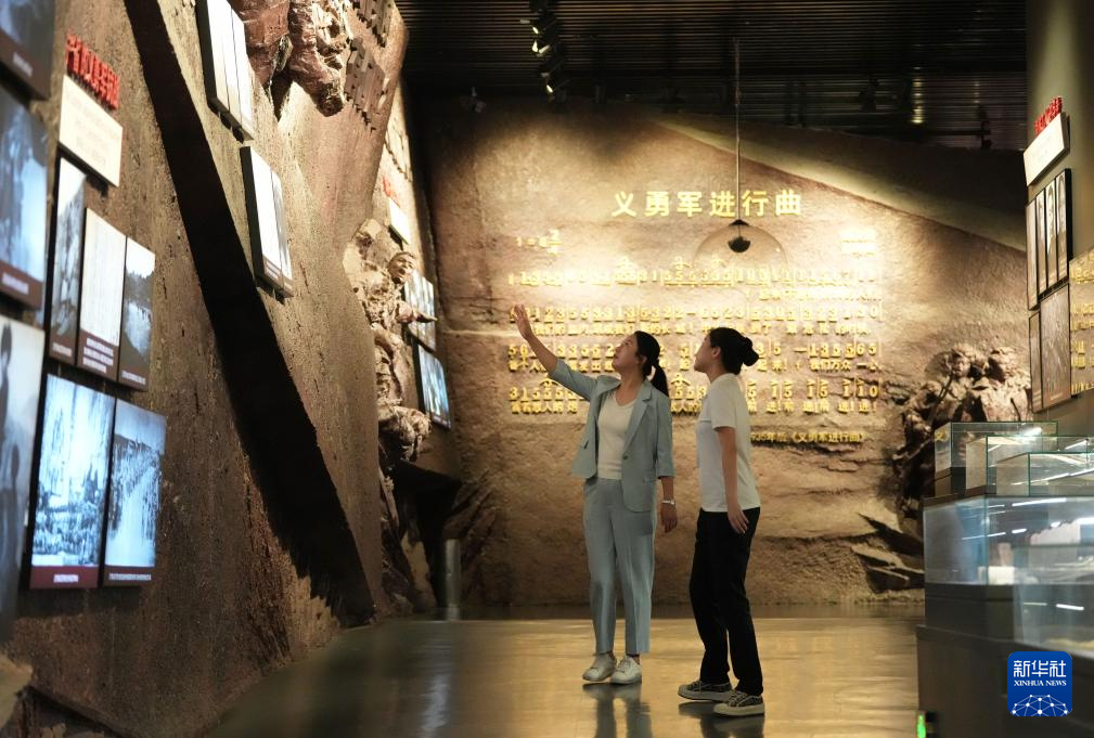 7月28日,在“九一八”歷史博物館,石任華(左)和同事交流展陳和講解融合技巧。