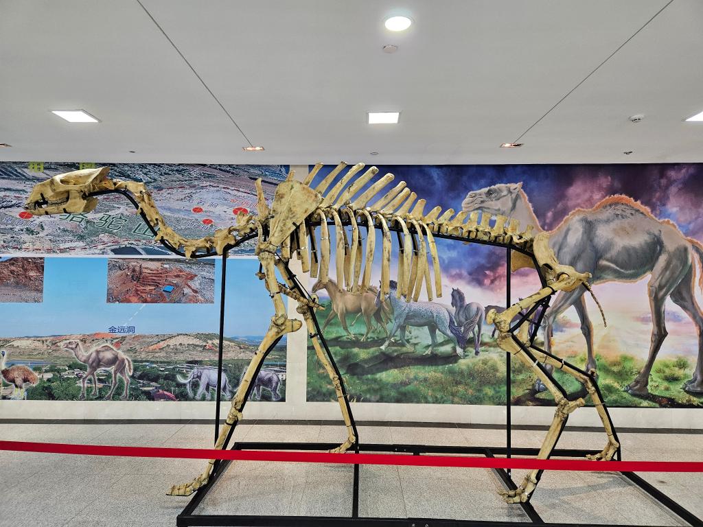 圖為復原的金普巨副駱駝骨架,這副骨架被陳列在大連普灣經濟區管委會。新華社記者 于也童 攝