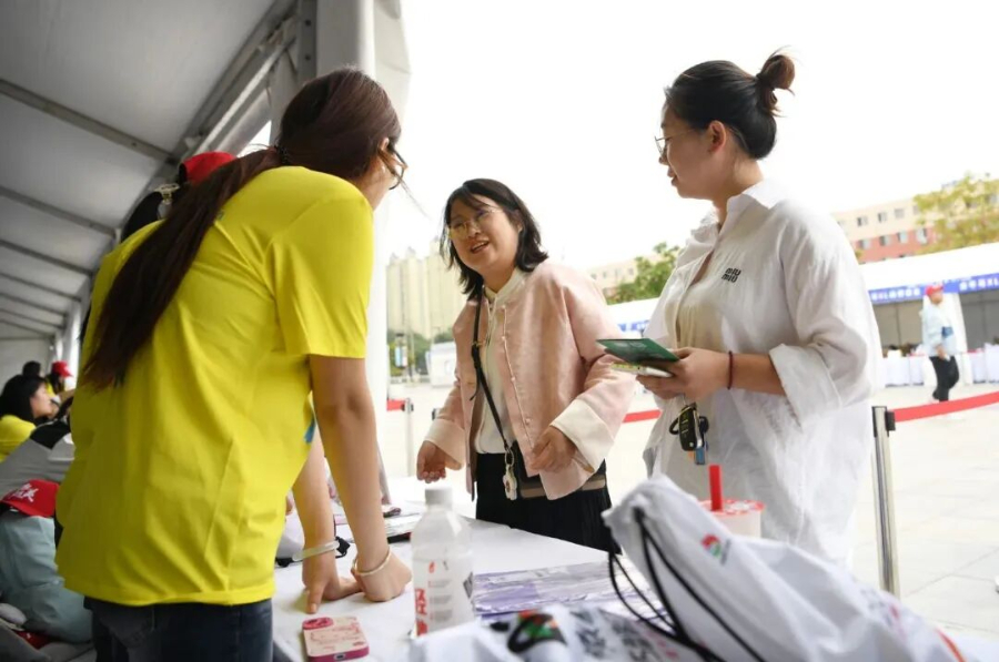領完裝備轉身,便是一片新潮熱鬧的逛展天地,午后的快閃演出更將這里的氛圍推向高潮。每日下午兩點,廣場中央的臨時舞臺便會響起悠揚旋律,以“我愛你中國”為主題的快閃活動準時上演;薩克斯演奏者吹奏起熟悉的旋律,醇厚音色引得跑友紛紛駐足;隨后,歌手登臺唱響《我和我的祖國》,不少選手自發加入合唱,揮舞著手臂抒發熱忱。