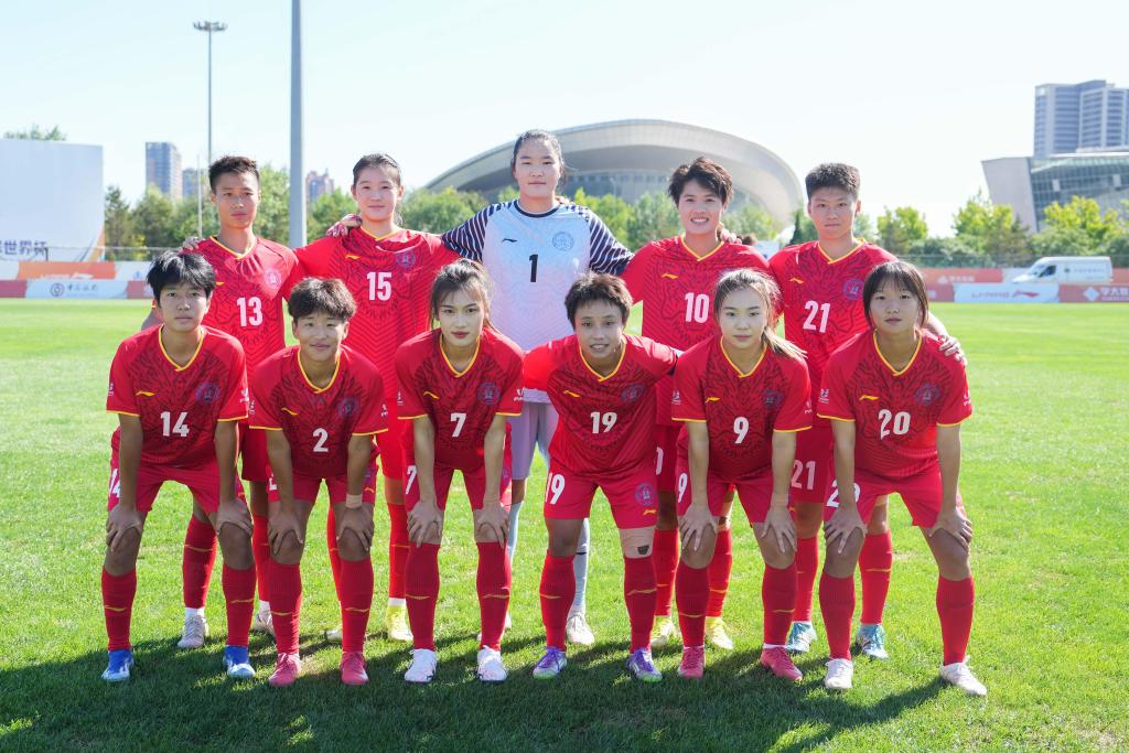 9月18日,北京師范大學女足球員在賽前合影。新華社記者 鄭煥松 攝