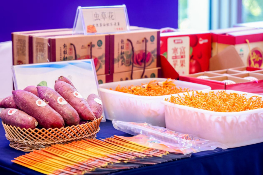 圖為康平縣農特產品展臺前展示的紅薯、蟲草等產品。(新華網發)pagebreak