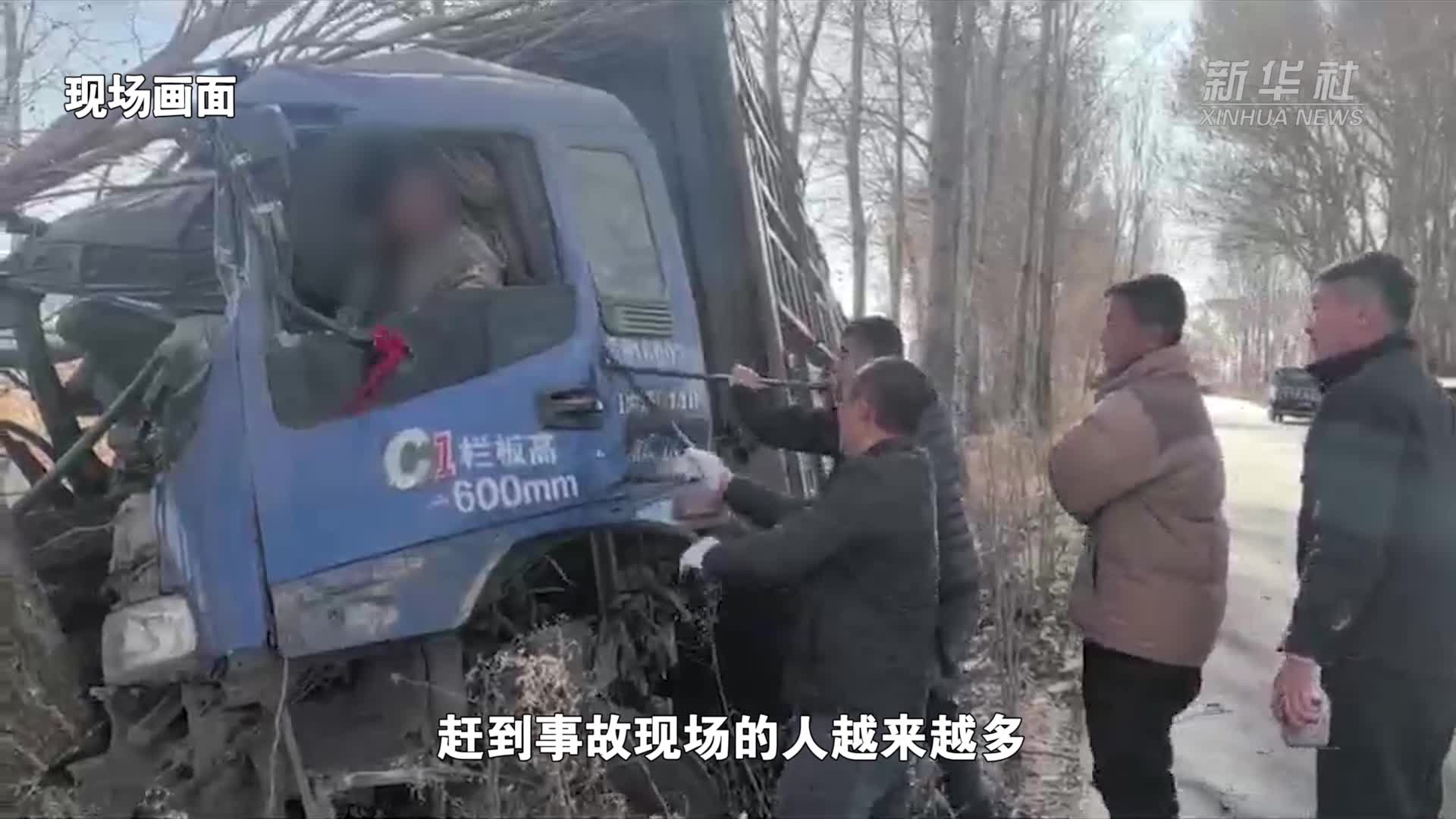 大貨車撞樹出車禍 眾人合力救援忙